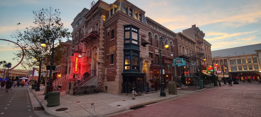 Insgesamt finde ich Islands of Adventures etwas schöner thematisiert als die Studios. Aaaber: die Studios wirken für mich tatsächlich insgesamt durch die zusammengewürfelte Thematisierung ein wenig nach Filmset bzw. es fühlt sich halt teilweise so an, als ob man in einer Kulisse herumlaufe. Also eigentlich alles richtig gemacht. Aber seht selbst: