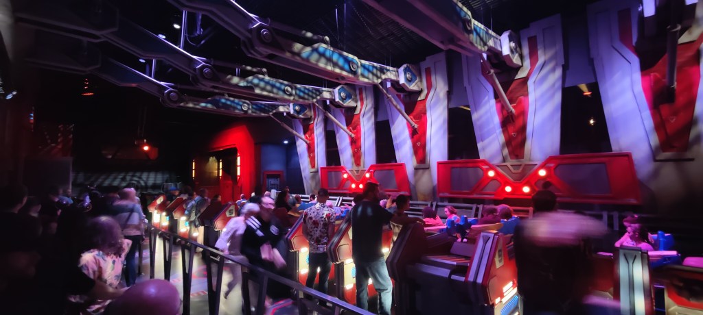Entwicklung und Konstruktion hat sich Disney 500 Millionen Dollar (!) kosten lassen. Dafür bauen wir in Europa sonst ganze Parks. Auf beweglichen, drehbaren Achterbahnwagen fährt man vorbei an riesigen Bildschirmen. Das ganze ist nicht wirklich gut zu fotografieren/filmen. Die Fahrt ist schnell und es ist schon recht dunkel in der Bahn. Die Bahn ist jedenfalls der absolute Hammer. Macht einfach mega Spass.