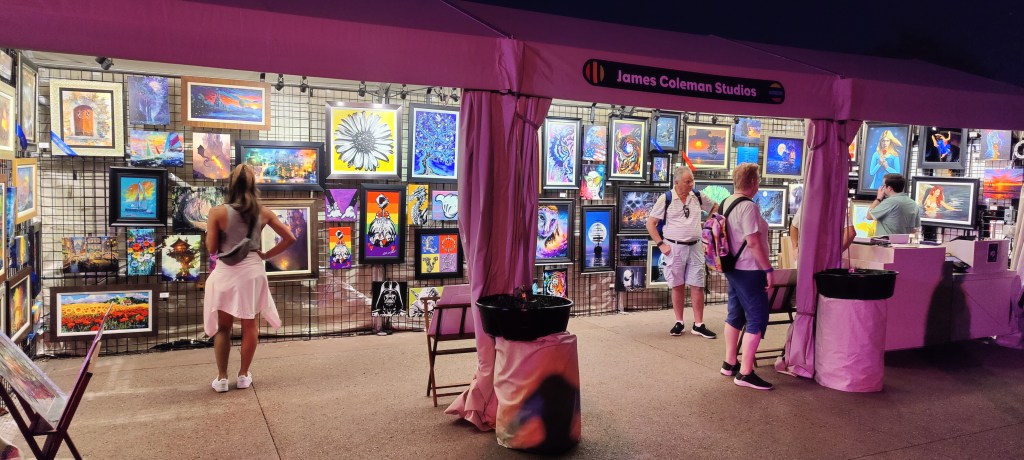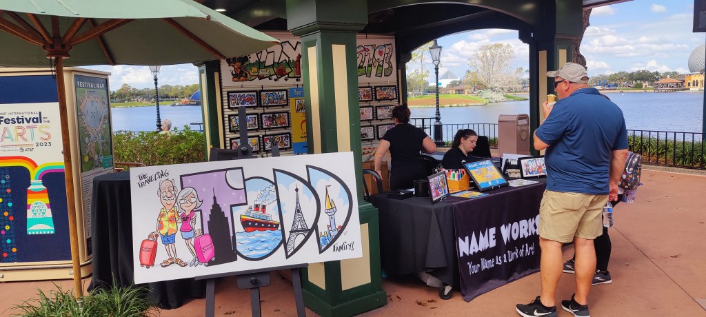 Übrigens finden in Epcot das gesamte Jahr über mehrere Festivals statt, die immer direkt auch ein paar Wochen/Monate gehen. Aktuell haben wir vom 13.01. bis 20.02.23 das „International Festival of the Arts“. Entsprechend gibt es Kunst zu kaufen, zu bestaunen und mit zu gestalten: