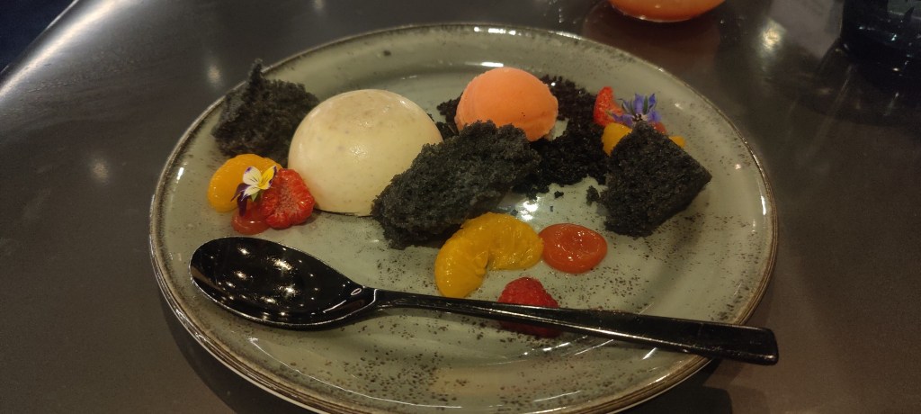 Meine Kellnerin war hervorragend. Wir hatten eine tolle Unterhaltung über das Weltall und sie hat mein Essen genau so getimed, dass ich um 20:45 Uhr – pünktlich zu Harmonious – wieder draussen war.