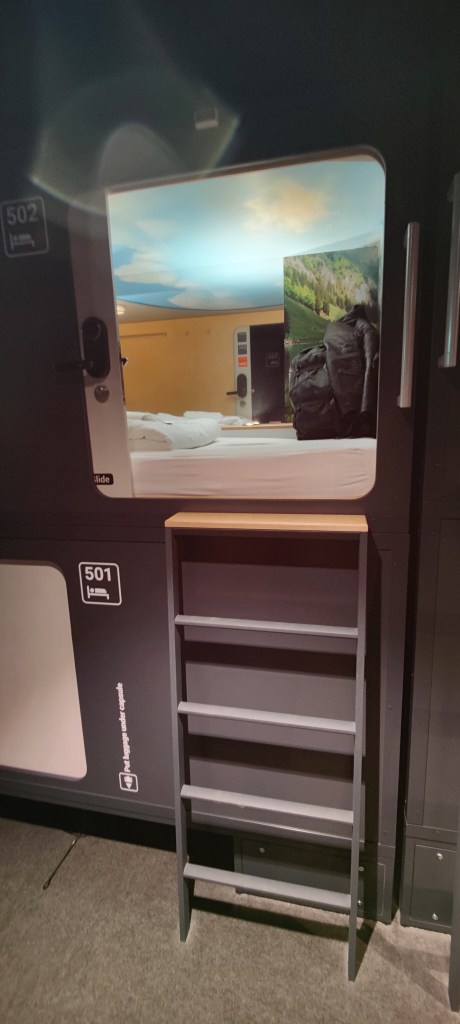 Urlaub vor dem Urlaub – nach Ankunft am Flughafen Zürich erstmal Vorabend Check-In erledigen und dann geht’s auf ins Kapselhotel 😊